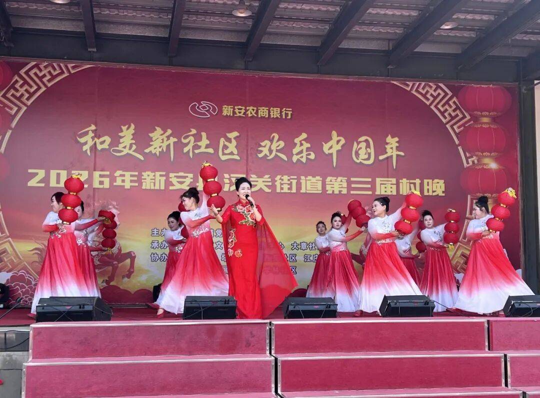 活动内容:社区村民自创、自编、自演,举办第三届“和美新社区、欢乐中国年”主题村晚,通过歌舞、戏曲、小品等丰富多彩的节目,以及写春联、猜灯谜、趣味游戏等民俗体验类环节,烘托着自由又热闹的乡村新年氛围,展现美丽乡村新风貌。